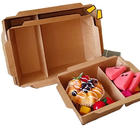 למחזור קראפט נייר קופסא אוכל מחולקת Takeaway מתכלה סלט בנטו אריזת מגש